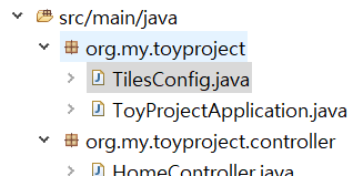 springboot로 프로젝트를 하게 되면 기본적으로 패키지가 저렇게 계층구조를 이루지 않고 있다면 Tiles가 적용된 페이지를 찾을수없게된다.