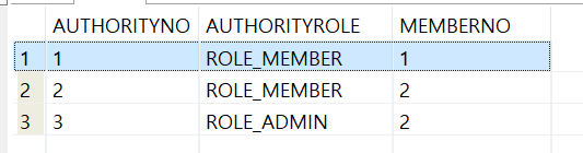 Member테이블과 Authory테이블에 저장된 모든 칼럼들이 모두 잘 불러와지는걸 볼수 있다!