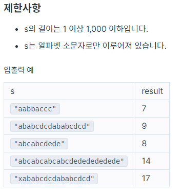 - 문자열을 압축할땐 문자열 절반크기보다 큰 단위로 압축할수 없다.