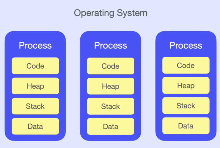 프로세스는 운영체제의 의해 각자 독립된 메모리 영역과 주소공간을 할당 받는다.