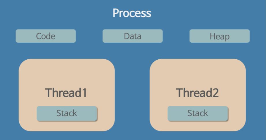 프로세스란 위에서 말했듯이 프로그램을 메모리에 적재시켜 실행 중인 것을 말한다. 이때 실행단위는 스레드가 된다.