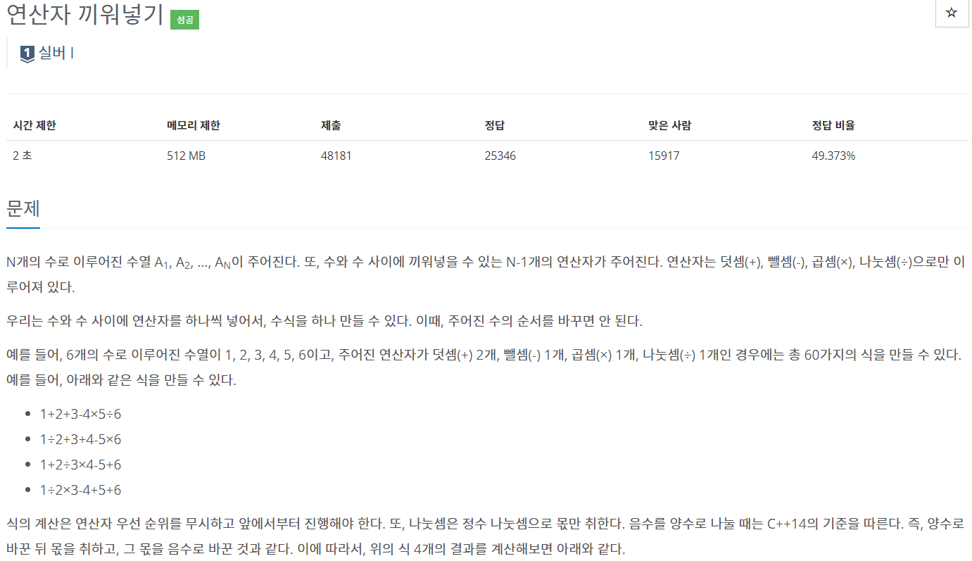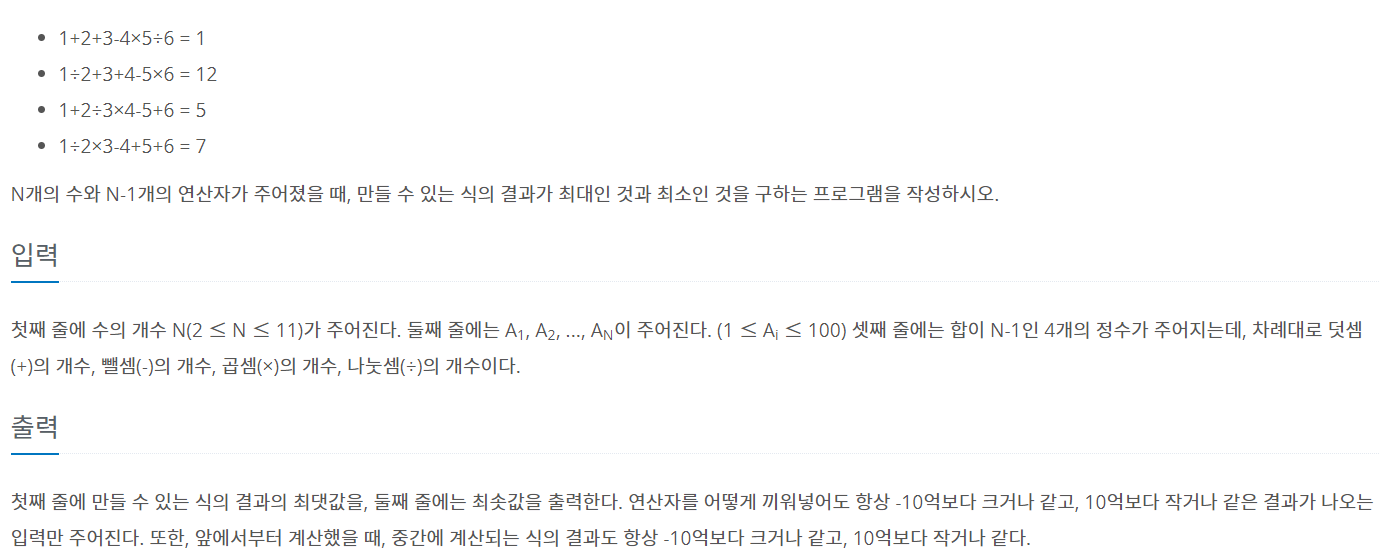 new BOJ_14888().solution(N, 1 , suArr[0]);