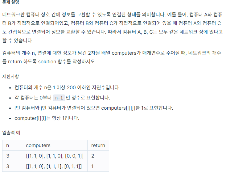 https://programmers.co.kr/learn/courses/30/lessons/43162