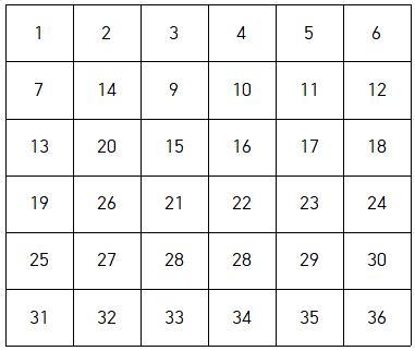 다음은 6 x 6 크기 행렬의 예시입니다.